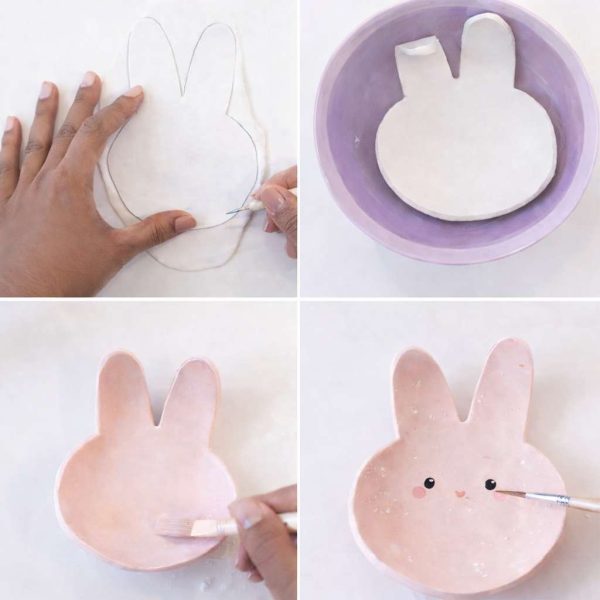 To make this dish, roll your air-dry clay evenly and reduce a rounded oval form with two delicate ears on the high. Maintain the perimeters clean and the thickness constant to keep away from cracking. As soon as reduce, gently drape the form over an upside-down bowl so the centre dips barely, making a shallow dish excellent for rings.