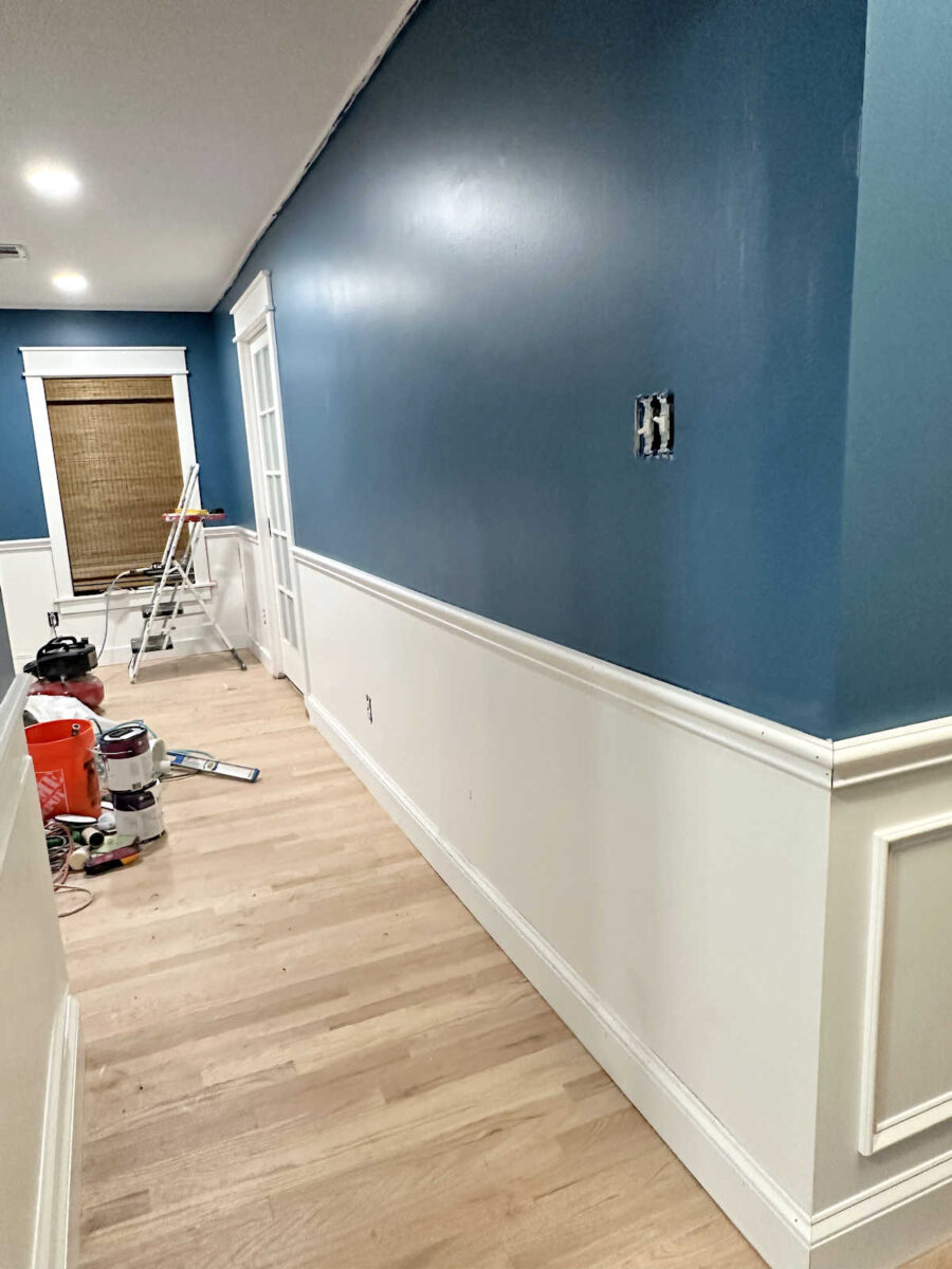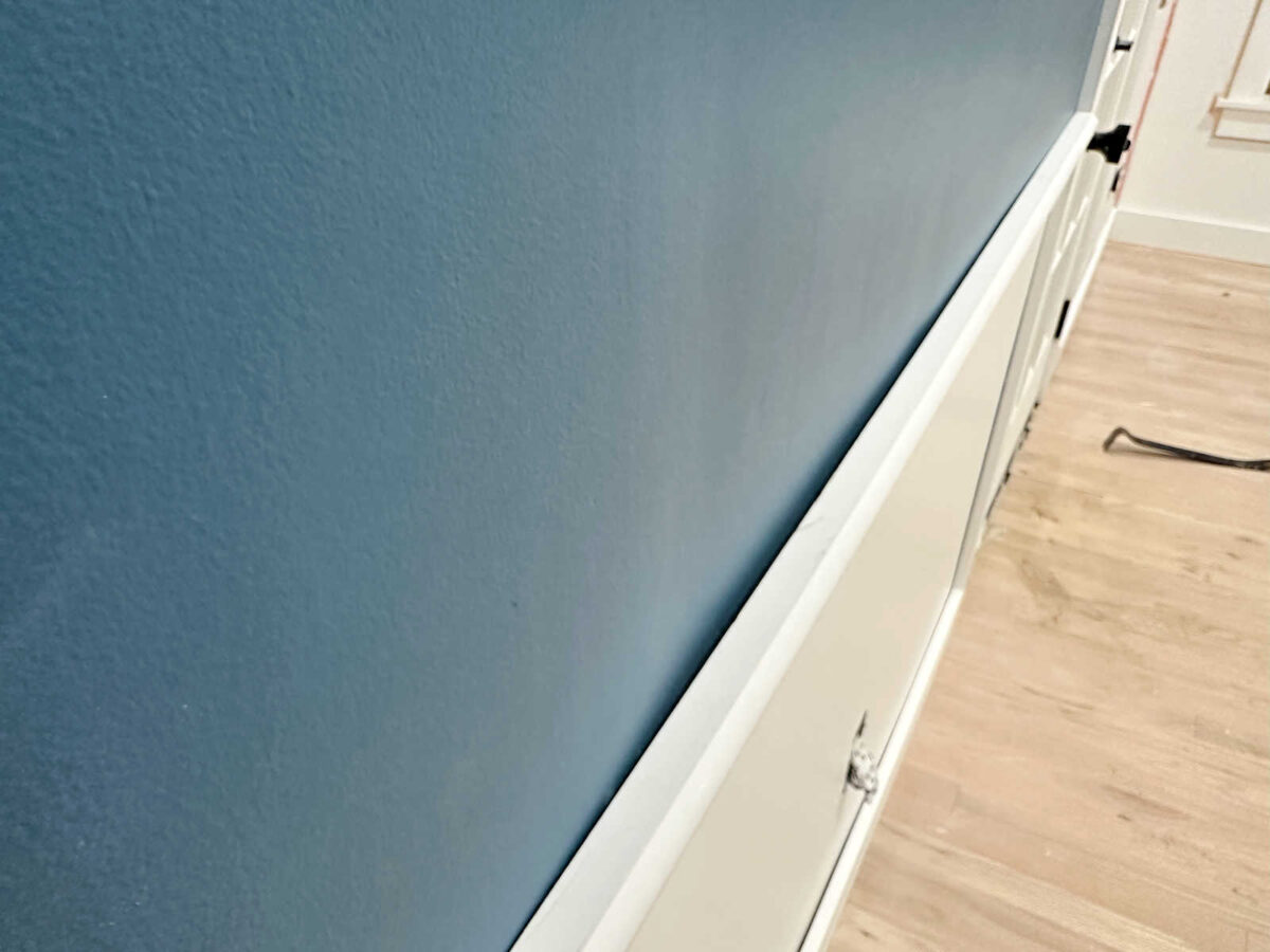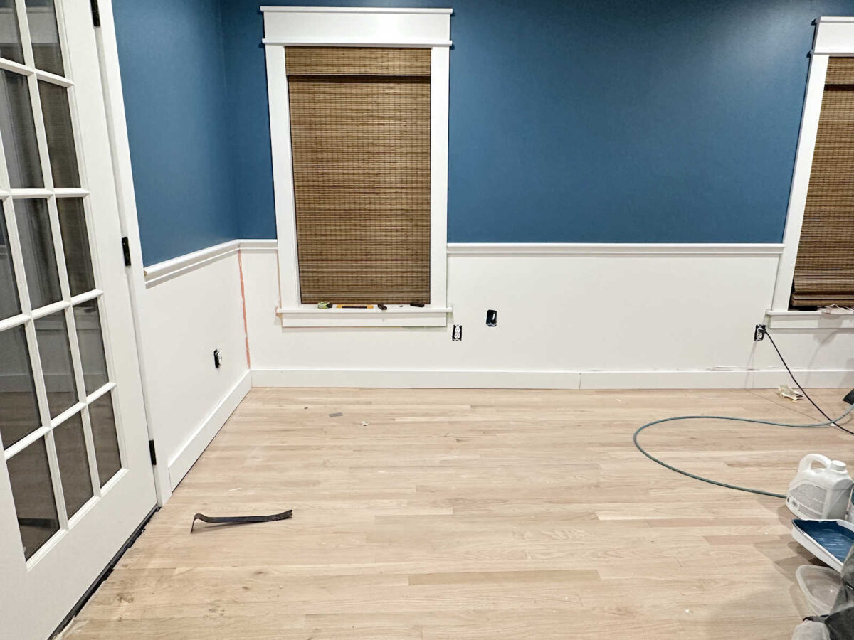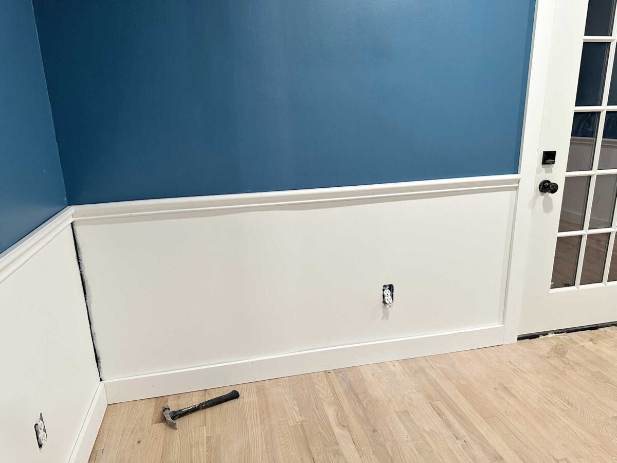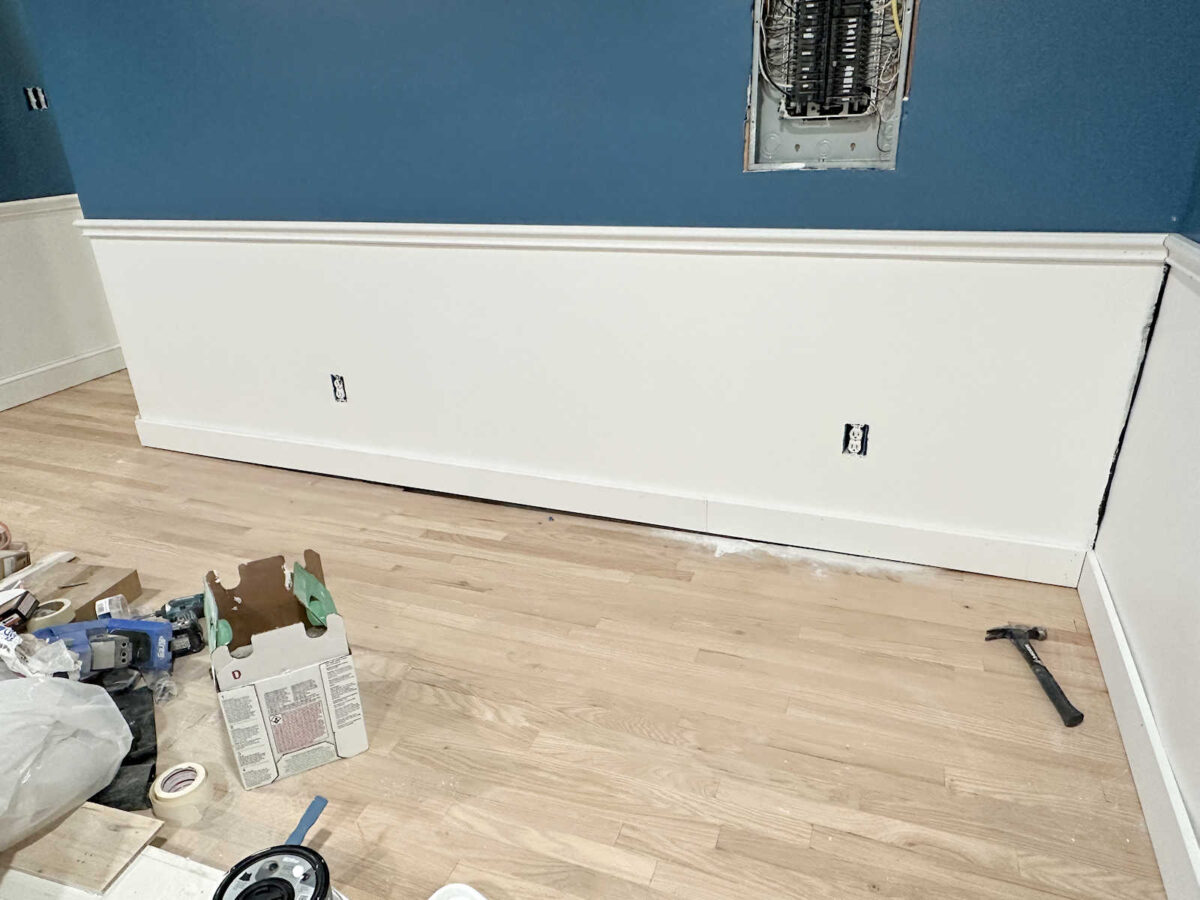 No, it’s not the general design plan that I used to be regretting final evening after I went to mattress. It’s the truth that I selected to place wainscoting within the one room that’s the most unlevel and out of sq. room in our entire home. And it additionally has the waviest partitions I’ve ever handled. I’ve by no means had this a lot bother putting in trim in every other room of our home. Usually, issues are a little bit bit unlevel, or only a contact out of sq.. I can usually disguise that in order that when it’s completed, these imperfections aren’t apparent. However this room is on one other degree altogether.