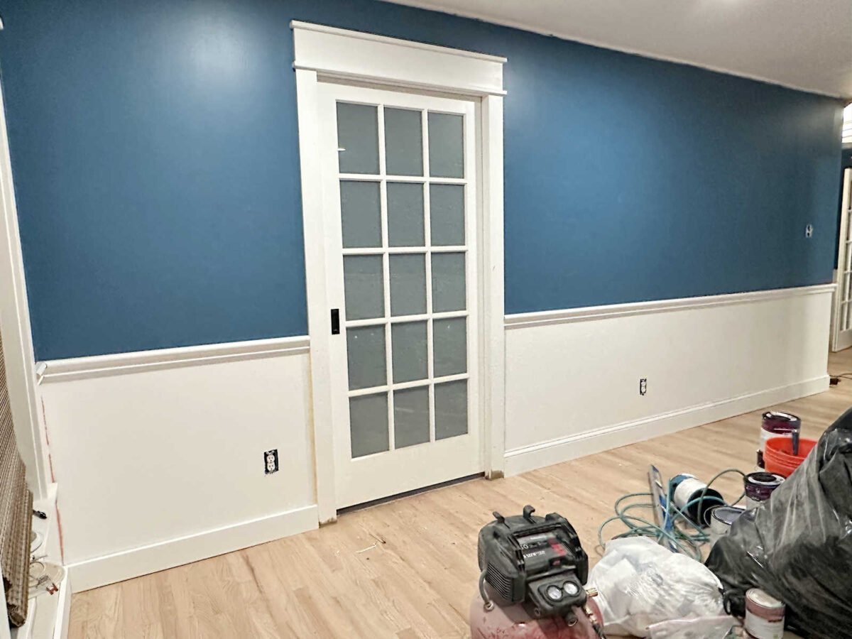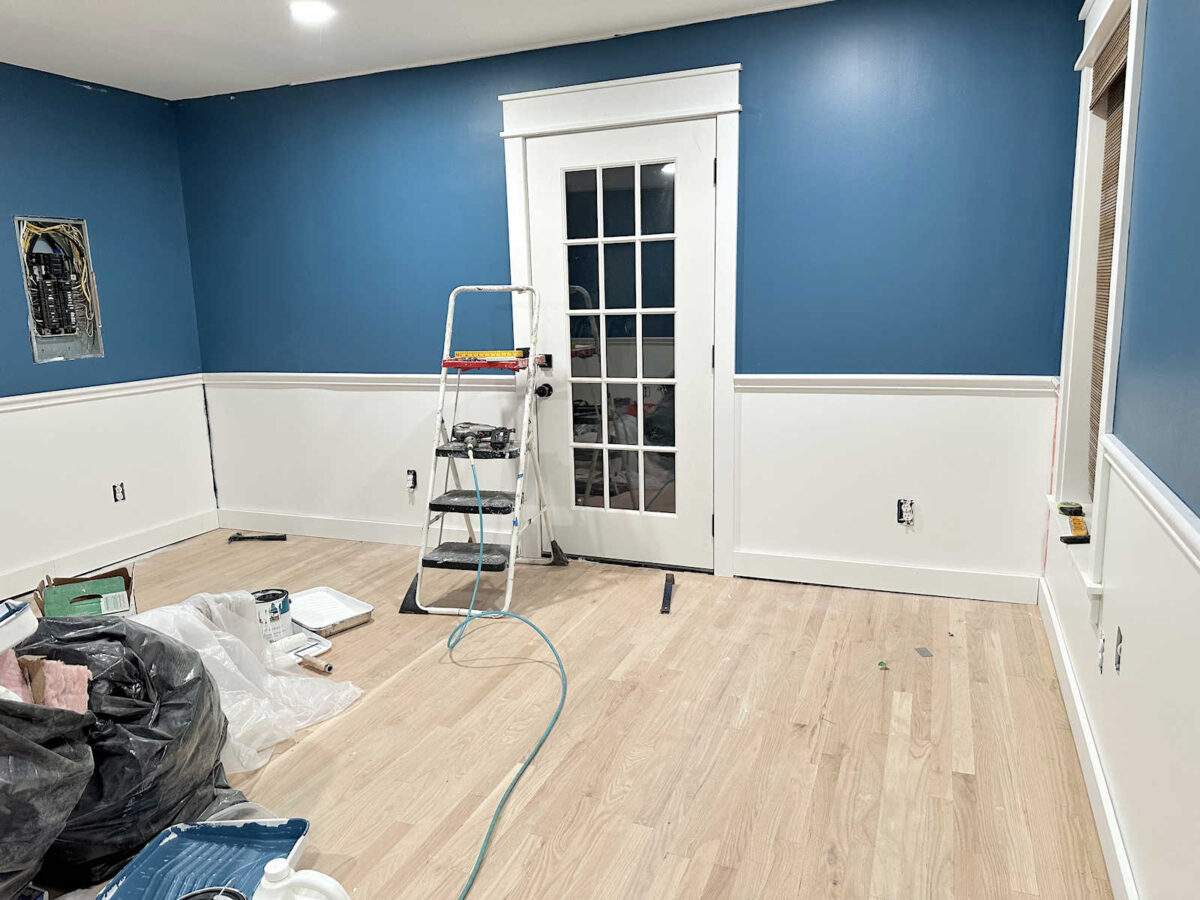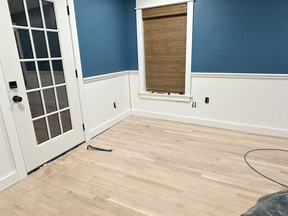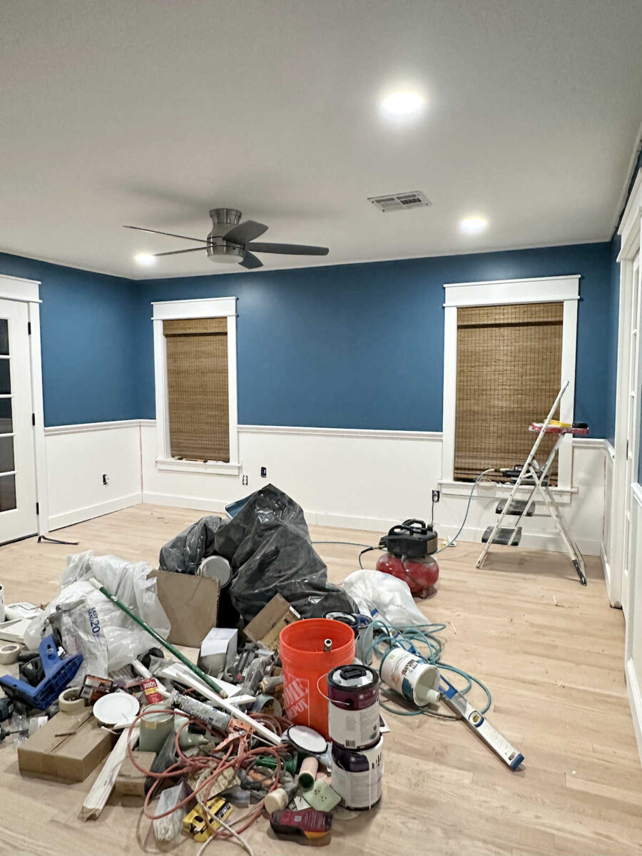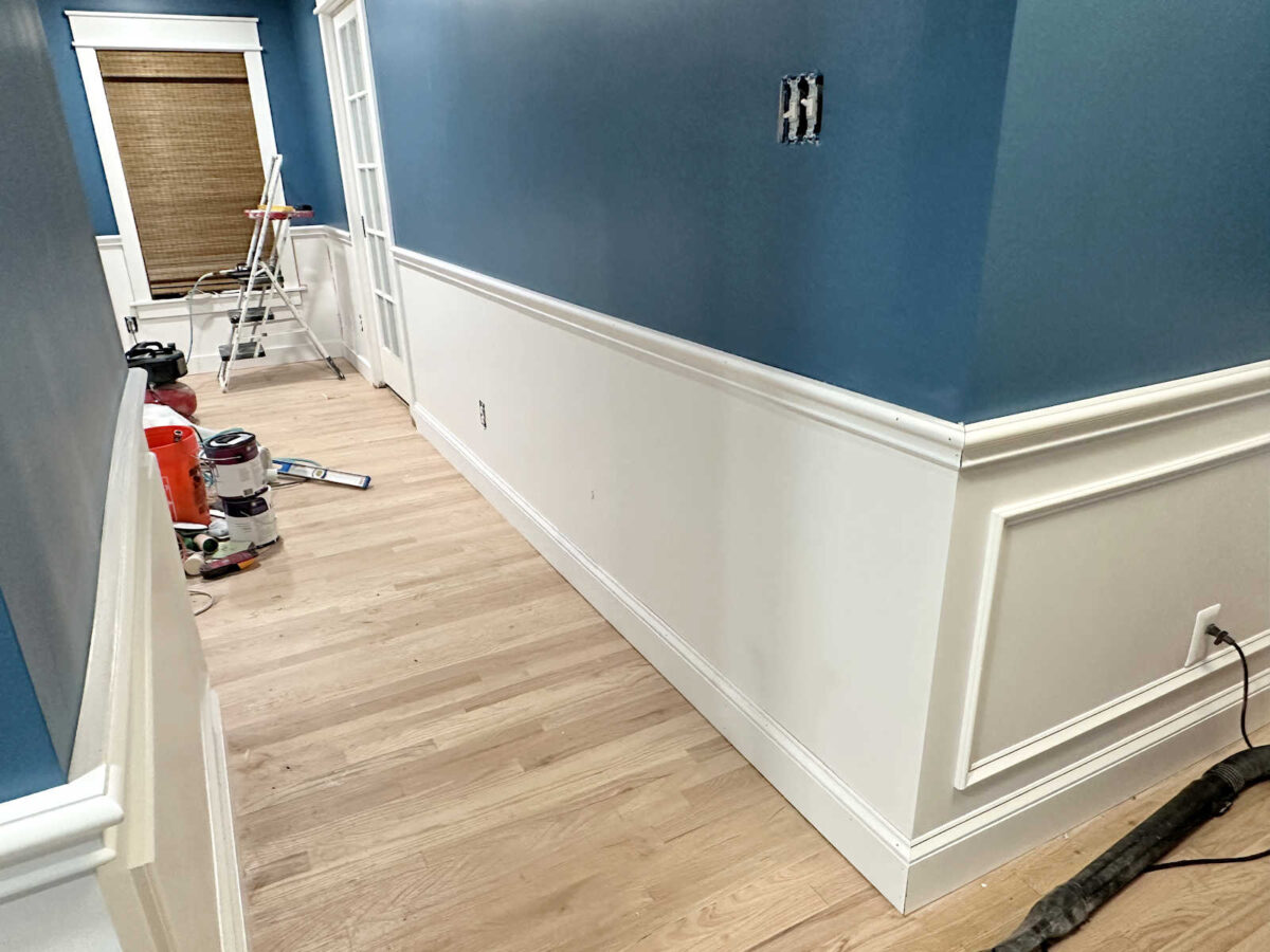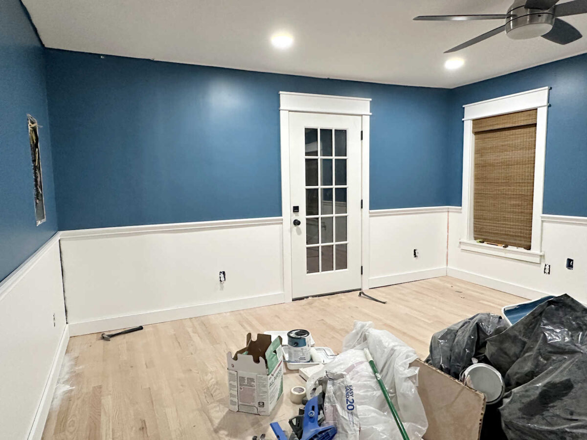 No, it’s not the general design plan that I used to be regretting final evening after I went to mattress. It’s the truth that I selected to place wainscoting within the one room that’s the most unlevel and out of sq. room in our entire home. And it additionally has the waviest partitions I’ve ever handled. I’ve by no means had this a lot bother putting in trim in every other room of our home. Usually, issues are a little bit bit unlevel, or only a contact out of sq.. I can usually disguise that in order that when it’s completed, these imperfections aren’t apparent. However this room is on one other degree altogether.