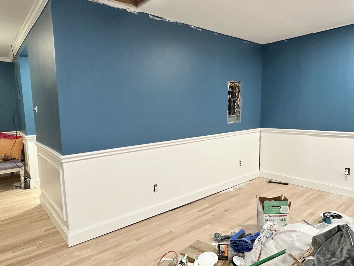After which there’s this wall, the waviest wall in the home. You’ll be able to see how wavy it’s simply by the shadows underneath the chair rail.