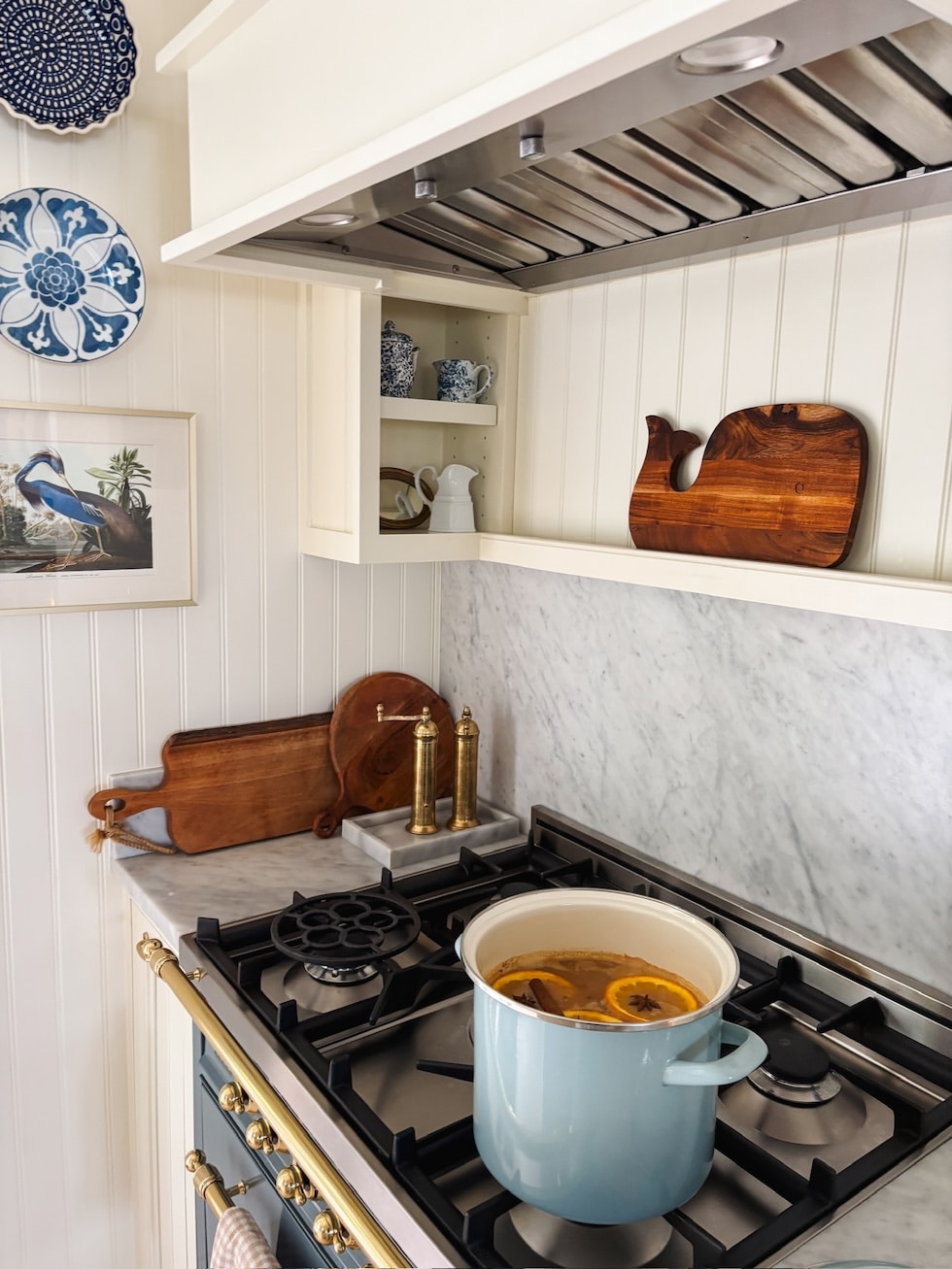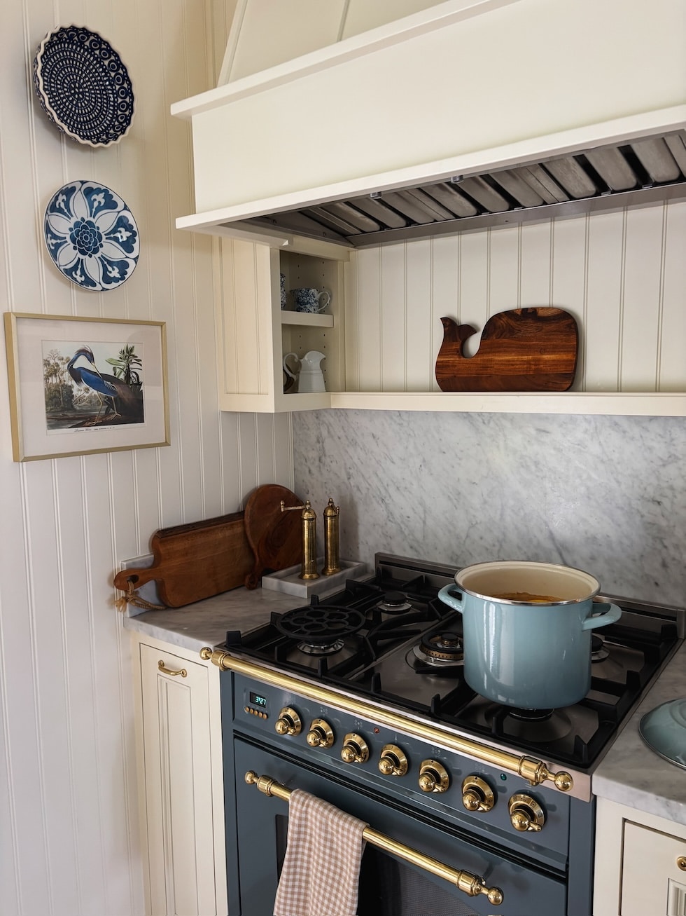 My Wooden Whale Serving Board might be discovered right here // My Vary and extra kitchen sources might be discovered right here