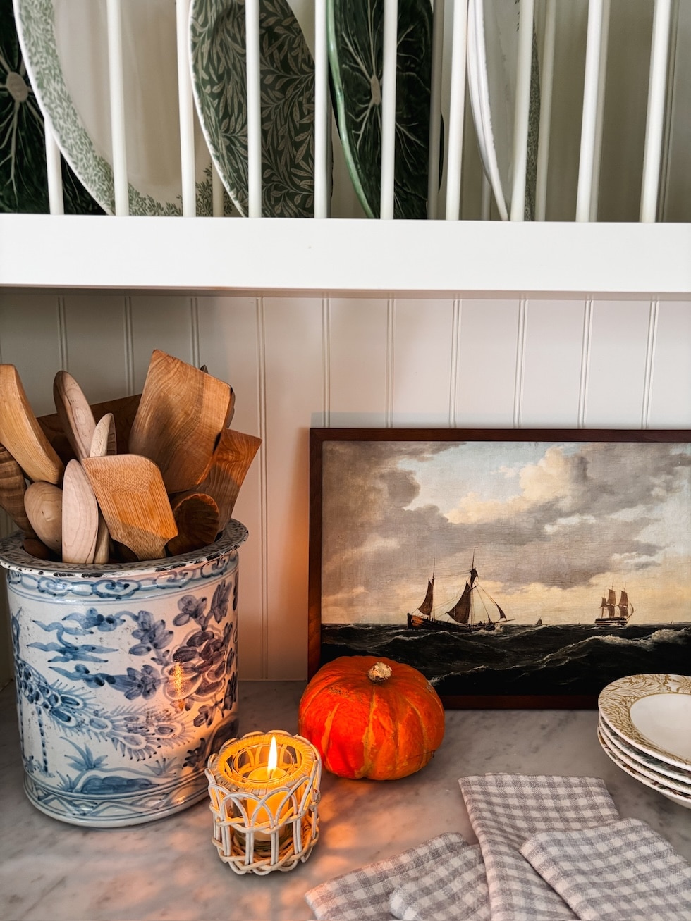 Welcome to some scenes from our cozy fall kitchen! My daughter Courtney and I just lately styled our kitchen for a model video we made for a partnership on Instagram, so we thought it could be enjoyable to take some pictures to share with you right here!