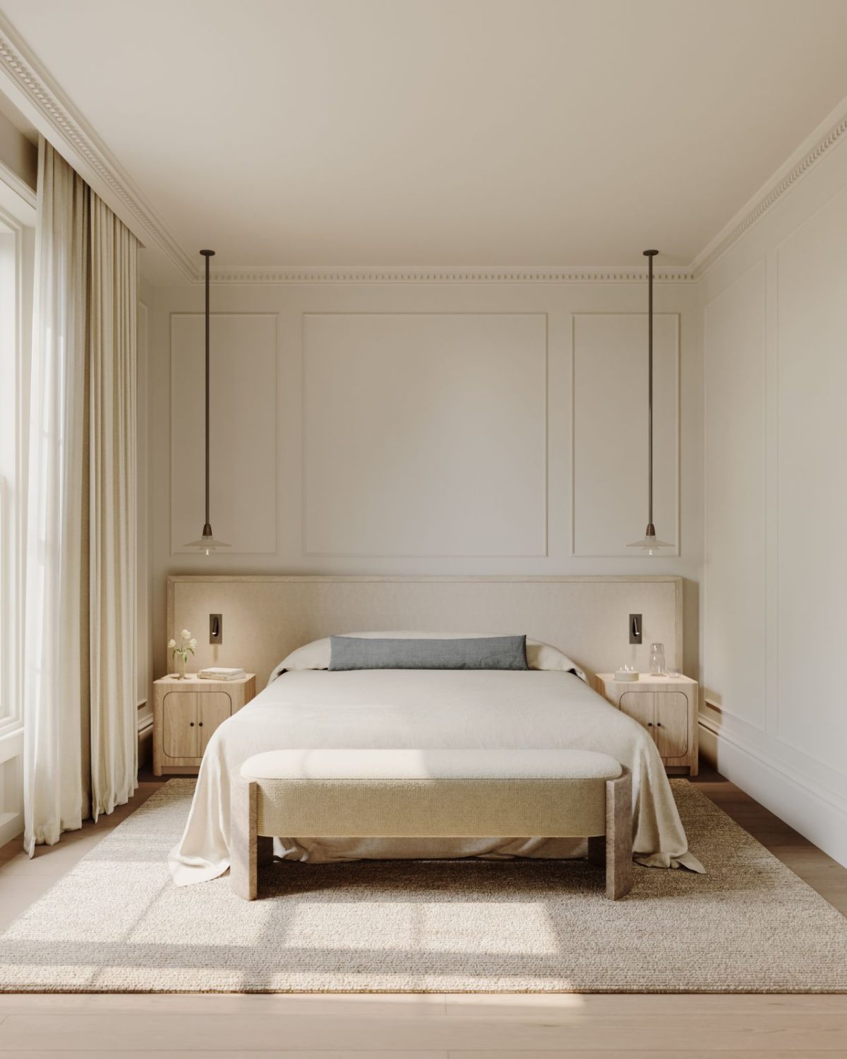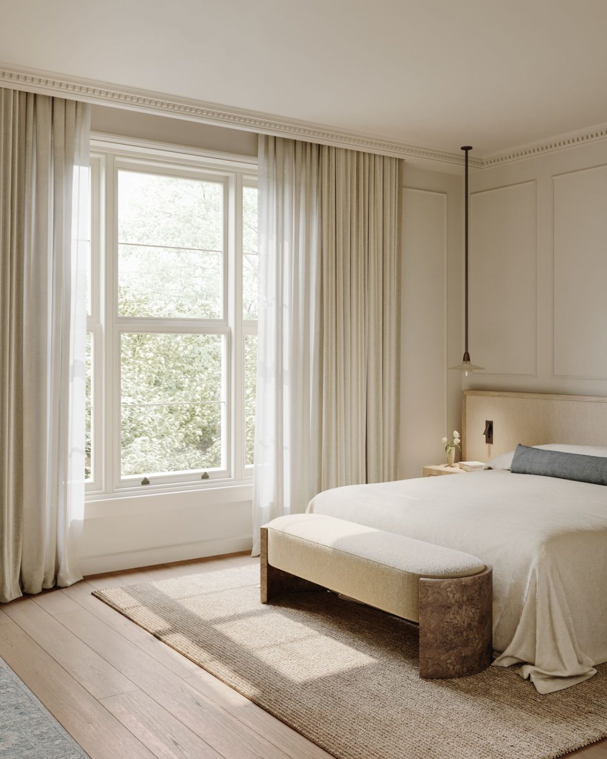 The principal bed room continues the identical language however softens it even additional. There’s an ease right here—a way of retreat.