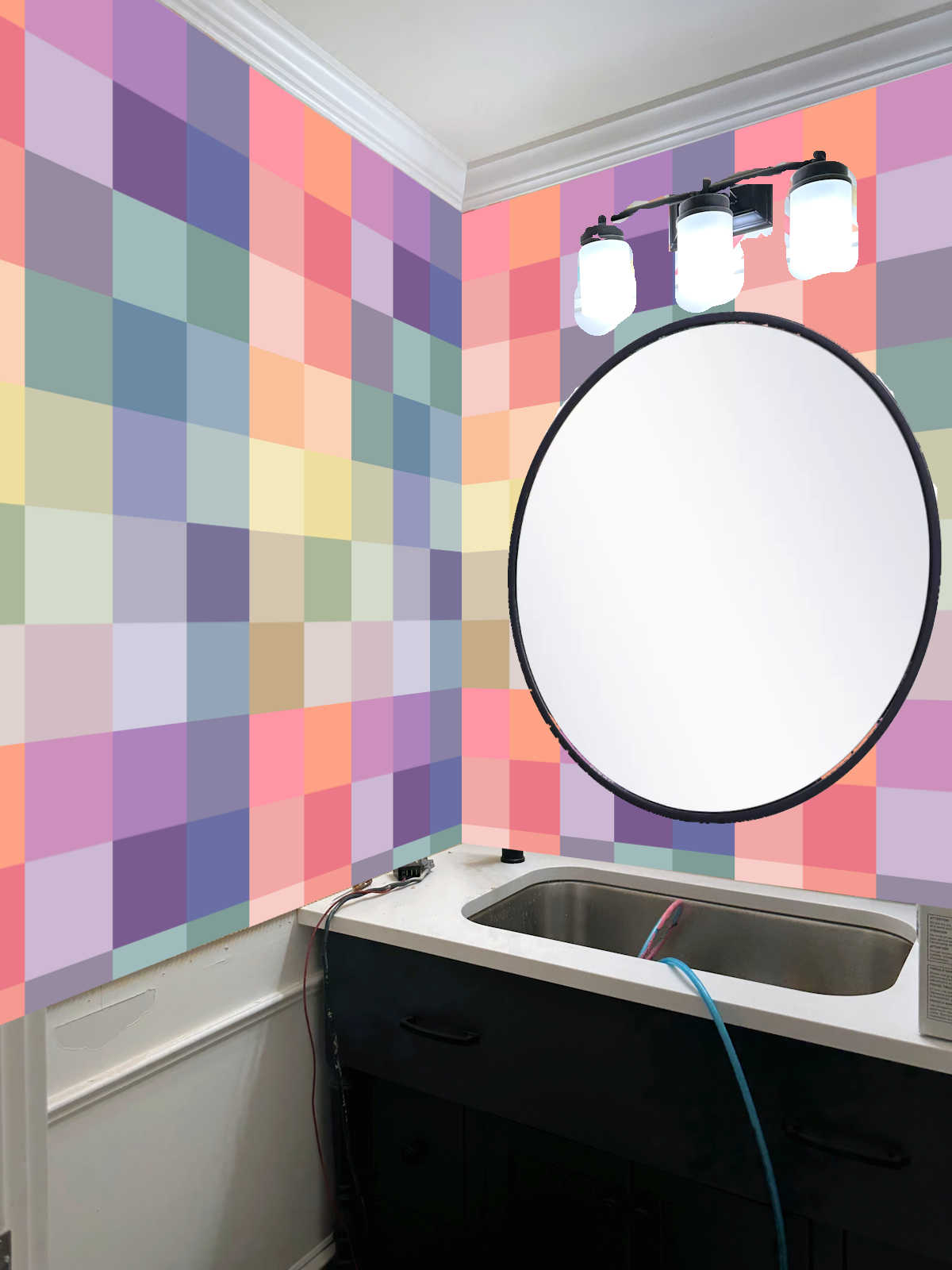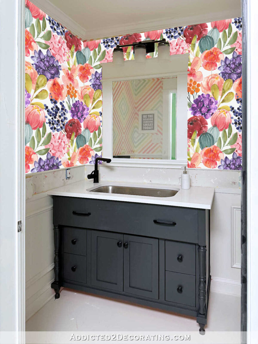 A few weeks in the past, I shared that I used to be going to calm issues down a bit within the studio toilet because it was going to be our interim visitor toilet. Whereas I’m superb with numerous colour and wild patterns, I didn’t actually need to topic visitors to that. I imply, let’s face it, the unique sample I did was superb for me and enjoyable to take a look at in footage, however it could possibly be a bit overwhelming and dizzying for lots of people.